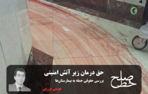 ماهنامه خط صلح – در جریان اعتراضات اخیر شاهد وقایع تلخ و اقدامات فراقانونی بسیاری در ایران بودیم. یکی از این موارد محدودیت در درمان معترضین به اشکال متفاوت بود. بر اساس گزارشهای منتشرشده از همان روزهای اول شروع اعتراضات، نیروهای انتظامی و امنیتی به بیمارستانهایی که معترضین مجروح به آنها منتقل شده بودند حمله و صحنههای دلخراشی را ایجاد کردند. عفو بینالملل تایید کرده است که مجروحان شیشههای بیمارستان را شکسته و اقدام به شلیک گاز اشکآور در داخل برخی بیمارستانها کردهاند. کادر درمان بیمارستانها تهدید شدند که نباید به معترضین خدمات درمانی بدهند و یا اگر میدهند حتماً باید از قبل نیروهای امنیتی را مطلع کنند. به داروخانهها گفته شد هر شهروندی که وسایل پانسمان و ضدعفونیکننده خریداری کرد به مامورین اطلاع دهند یا از فروش این اجناس به مجروحان خودداری کنند. در برخی بیمارستانها شاهد بودیم که ماموران مانع استفادهی کادر درمان از بانک خون برای معترضین مجروح شدهاند و حتی در برخی موارد این ماموران اقدام به ربودن معترضین از بیمارستانها کردند.