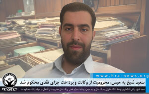 خبرگزاری هرانا – سعید شیخ، وکیل دادگستری توسط مرجع قضایی به یک سال و شش ماه حبس، پرداخت جزای نقدی و یک سال محرومیت از اشتغال در حرفه وکالت محکوم شد. یک سال از محکومیت حبس این وکیل دادگستری به حالت تعلیق درآمده است.