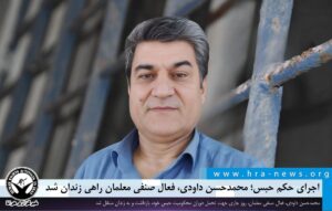 خبرگزاری هرانا – محمدحسن داودی، فعال صنفی معلمان، روز جاری جهت تحمل دوران محکومیت حبس خود، بازداشت و به زندان منتقل شد.