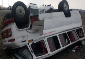 مینیبوس سرویس کارگران معدن در بردسیر واژگون شد/ مصدومیت۵ کارگر