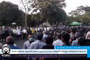 به گزارش خبرگزاری هرانا، ارگان خبری مجموعه فعالان حقوق بشر در ایران، شماری از شهروندان ساکن تبریز امروز شنبه ۲ مردادماه، در حمایت از اعتراضات خوزستان، در سطح این شهر دست به تجمع و راهپیمایی اعتراضی زدند.