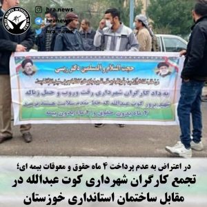 به گزارش خبرگزاری هرانا به نقل از ایلنا، روز شنبه ۲۵ دی ۱۴۰۰، شماری از کارگران شهرداری کوت عبدالله، در اعتراض به عدم رسیدگی به مطالباتشان، در مقابل ساختمان استانداری خوزستان واقع در اهواز دست به تجمع زدند.
