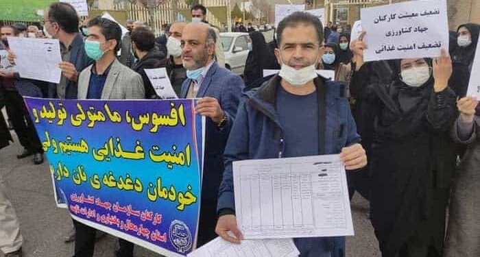 کارکنان جهاد کشاورزی استان چهارمحال و بختیاری، امروز پنجشنبه ۱۹ اسفندماه ۱۴۰۰، در برابر این سازمان در شهرکرد تجمع کردند. خواسته کارکنان معترض، افزایش حقوق و مزایا، متناسب با تورم و گرانی شدید در این وضعیت اقتصادی بحرانی بود. معترضان پلاکاردی در دست داشتند که روی آن نوشته شده بود: «ما کارکنان سازمان جهاد کشاورزی استان چهارمحال و بختیاری و ادارات تابعه، خواستار اجرای عدالت و برخورداری از حق قانونی تسری فوقالعاده میباشیم.»