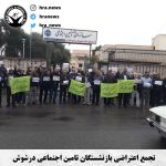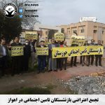 بازنشستگان با سر دادن شعارهایی اعتراضی و در دست داشتن پلاکاردهایی، خواستار رسیدگی به مطالباتشان شدند.