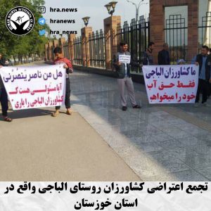 روز یکشنبه هفتم اسفند ماه ۱۴۰۱، شماری از کشاورزان روستای “الباجی” واقع در استان خوزستان برای دستیابی به حق آبه خود، در مقابل ساختمان استانداری خوزستان واقع در اهواز، دست به تجمع اعتراضی زدند.