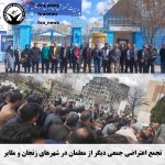 خبرگزاری هرانا – امروز سه شنبه هشتم فروردین ماه، شماری از معلمان در شهرهای تبریز، بجنورد، زنجان، ملایر، اردبیل، کرمانشاه و همدان در مقابل اداره های آموزش و پرورش این شهرها و جمعی از بازنشستگان تامین اجتماعی اهواز در مقابل اداره کل تأمین اجتماعی استان خوزستان، با برگزاری تجمعاتی اعتراضی خواستار رسیدگی به مطالباتشان شدند.
