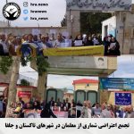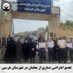 خبرگزاری هرانا – امروز سه شنبه نوزدهم اردیبهشت ماه، در پی فراخوانی از پیش اعلام شده جمعی از معلمان در شهرهای هرسین، اهواز، شوش، اراک، همدان، اسلام آباد غرب، سنندج، قزوین، تربت حیدریه، تاکستان، جلفا، اصفهان، کرمانشاه، آبدانان، بجنورد، یاسوج، رشت، سقز، بابل، اردبیل و کازرون در اعتراض به عدم رسیدگی به مطالباتشان در مقابل ساختمان آموزش و پرورش شهرهای خود تجمع اعتراضی برگزار کردند. همچنین کارگران شهرداری بندر امام در این شهرستان، مالباختگان رامک خودرو مقابل ساختمان مجتمع قضایی مفتح در تهران و جمعی از کارکنان استانداری استان کرمانشاه در محوطه این استدانداری در اعتراض به عدم رسیدگی به مشکلاتشان دست به تجمع اعتراضی زدند. از سوی دیگر کارگران پیمانکاری ابنیه فنی کرمان برای چهارمین روز متوالی در اعتراض به عدم رسیدگی به خواسته هایشان و شماری از دانشجویان دانشکده علوم پزشکی دانشگاه تهران در اعتراض به احضار بیش از ده تن از دانشجویان این دانشگاه به کمیته انضباطی در خصوص حجاب دست به تحصن و اعتصاب زدند.