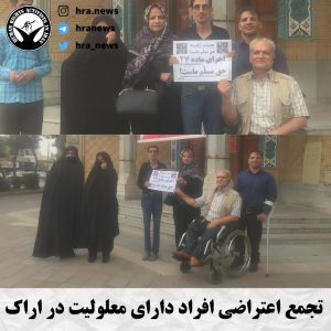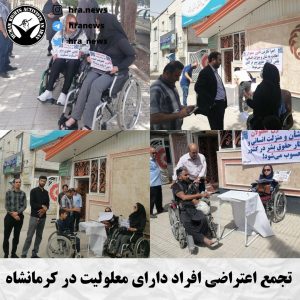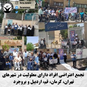 به گزارش خبرگزاری هرانا، ارگان خبری مجموعه فعالان حقوق بشر در ایران، امروز یکشنبه بیست و یکم خردادماه ۱۴۰۲، جمعی از افراد دارای معلولیت در مقابل ساختمان نهاد ریاست جمهوری واقع شهر تهران و در مقابل اداره کل بهزیستی شهرهای اراک، قم، بروجرد، کرمان، کرمانشاه و اردبیل، در اعتراض به عدم رسیدگی به مطالباتشان دست به تجمع اعتراضی زدند.