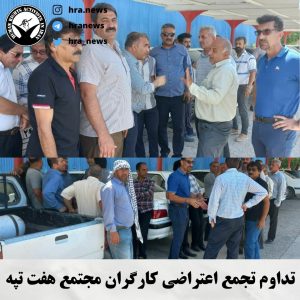 خبرگزاری هرانا – امروز چهارشنبه هفتم تیرماه، شماری از کارگران شرکت کشت و صنعت نیشکر هفت تپه، برای سومین روز متوالی در مقابل دفتر مدیریت این شرکت، جمعی از کارکنان استانداری کهگیلویه و بویراحمد در محوطه ساختمان استانداری این استان واقع در یاسوج و شماری از متقاضیان شرکت تعاونی مسکن “خبازان” ساوه، در مقابل ساختمان شهرداری در اعتراض به عدم رسیدگی به مطالباتشان تجمع اعتراضی برگزار کردند.