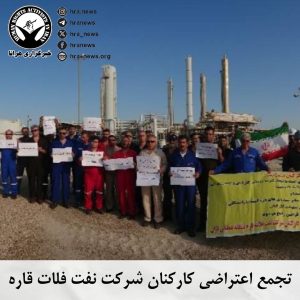 این تجمع در محل کار کارکنان در منطقه نفتی لاوان صورت گرفته است.