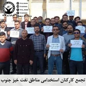 تجمع اعتراضی کارکنان استخدامی مناطق نفت خیز جنوب