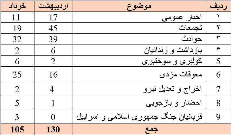 این گزارشات آماری از میان بیش از 105 خبر در طول خرداد ماه 1404 تهیه شده است.