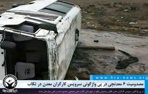 خبرگزاری هرانا – در پی واژگونی سرویس کارگران معدن طلای زرهشوران واقع در شهرستان تکاب، شش معدنچی مصدوم شده و راهی بیمارستان شدند.