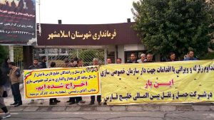 به گزارش خبرگزاری هرانا، به نقل از ایلنا، امروز چهارشنبه ۱ آبان ۱۳۹۸، جمعی از کارگران شرکت حمل و نقل خلیج فارس، در اعتراض به اخراج شماری از کارگران و همچنین تبدیل وضعیت قرارداد از حالت قرارداد مستقیم به پیمانکاری، در مقابل فرمانداری شهرستان اسلامشهر تجمع کردند.