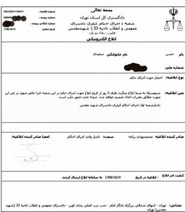 بر اساس این احضاریه وی باید طرف پنج روز پس از ابلاغ به محل شعبه ۱ دادسرای ناحیه ۳۳ تهران مراجعه کند.