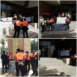 معترضان دلایل اجتماع خود را اعتراض به اخراج از کار و ماهها حقوق معوقه خود عنوان کردند.