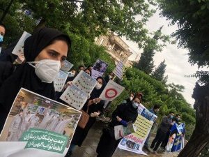به گزارش خبرگزاری هرانا به نقل از ایلنا، امروز چهارشنبه ۳۱ اردیبهشت ماه ۱۳۹۹، جمعی از پرستاران گیلانی که پس از شیوع کرونا با قراردادهای ۸۹ روزه به کار گرفته شدهاند، به نمایندگی از همکاران خود به تهران آمدند و در مقابل وزارت بهداشت و درمان این شهر تجمع کردند.