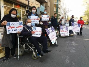 به گزارش ایلنا، امروز چهارشنبه ۱۲ آذر ماه ۹۹، جمعی از توان یابان در اعتراض به اجرایی نشدن قانون معلولان، ضمن سر دادن شعارهایی در مقابل درب ساختمان پاستور نهاد ریاست جمهوری، تجمع اعتراضی بر پا کردند.